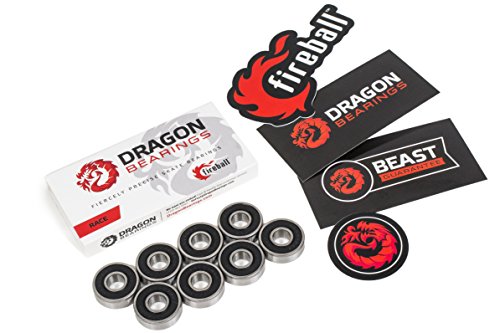 -. Brand : Fireball Skate -. Feature : BEAST GUARANTEE - Dragons are fully backed by the Fireball Beast Guarantee which promises 100% satisfaction on all Fireball products. / RACE and ENDURE LUBRICANTS - Light oil is applied in the RACE for high speed and slightly heavier grease is applied in the ENDURE for maximum longevity. / DUAL LABYRINTH SHIELDS - Dragons come standard with two shields on either side of the bearing for maximum protection from the elements. Install and forget. Dragons are designed to last. / FIERCELY PRECISE - Machined with incredible precision, Dragons are finely crafted for speed and longevity. / BY SKATERS, FOR SKATERS - Designed by skaters wanting a bearing that cut the marketing BS and went for pure tried and true bearing tech. The result is Dragon. -. IsAutographed : 0 -. IsMemorabilia : 0 -. Label : Fireball Skate -. Manufacturer : Fireball Skate -. MPN : FRB-R-DRNBG -. PartNumber : FRB-R-DRNBG -. ProductGroup : Sports -. ProductTypeName : OUTDOOR_RECREATION_PRODUCT -. Publisher : Fireball Skate -. Studio : Fireball Skate -. Title : Fireball Dragon Precision Bearings for Skateboards and Inline Skates