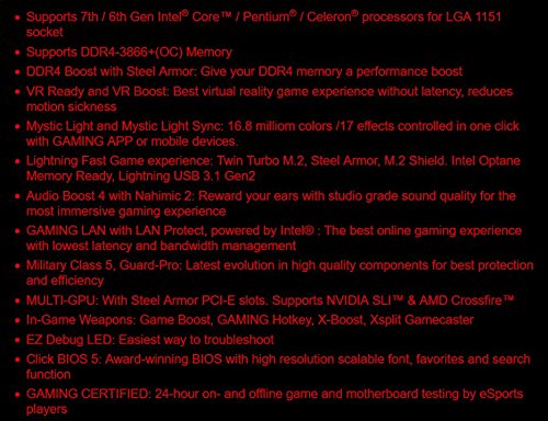 MSI Performance Gaming Intel Z270 DDR4 HDMI USB 3 SLI ATX Motherboard (Z270 GAMING PRO CARBON)