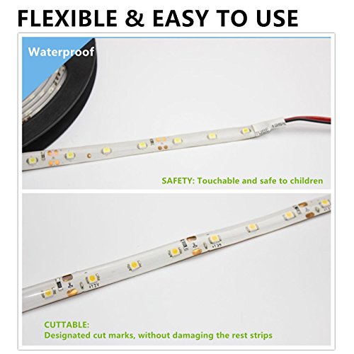 - CUTTABLE & WATERPROOF: 16.4 Ft (5 Meter) Roll, Cuttable every 3 LEDs, approx. every 2", at designated cut marks, without damaging the rest strips. Waterproof Rating: IP 65, suitable for indoor/outdoor use.