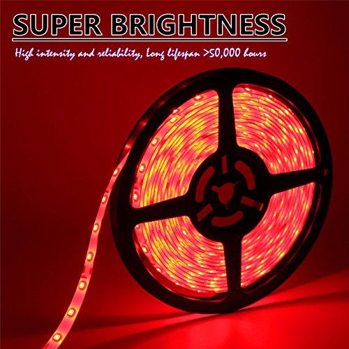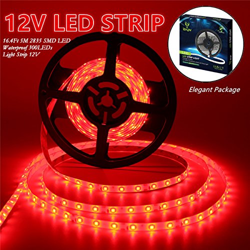 Led Strip Lights, IEKOV™ 2835 SMD 300LEDs Waterproof Flexible Xmas Decorative Lighting Strips, LED Tape, 5M 16.4Ft DC12V, 2 times brightness than SMD 3528 LED Light Strip (Red)