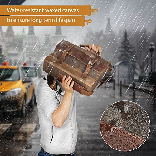 Features: - Extended, Sturdy, reinforced, adjustable and detachable shoulder straps. - Made of superior top cowhide ,a durable rugged heavy canvas fabric and sturdy hardware. - Geuine Thick Leather handle,detach the strap to be a professional business briefcase.Really conveneintly carry it around in 2 ways. - Solid and sturdy zippers featuring leather zipper puller to help you have a firm grip. - Double secured by insert buckle and zippers that lead you a quick access into the pockets. - Pocket pads for fifteen-inch laptops or Ipad, cushion your device from sudden jolts or falls with the padded pocke.t