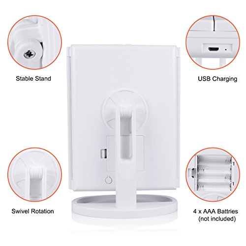 DOUBLE POWER SUPPLY - This LED makeup mirror can either operated by 4 pcs AAA batteries (not included) or USB cable (included) to make it work. Please note the mirror can’t store power itself.