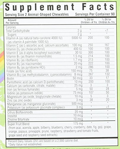 If children grew up in the rainforest, they'd get most of the nutrients for proper growth and development from whole foods like fruits, vegetables, whole grains and fish. Nutrients that are often missing from today's diets. Bluebonnet Super Earth Rainforest Animal Whole Food Based Multiple helps bridge this nutrient gap, providing important vitamins, minerals, super fruits and vegetables in two yummy animal-shaped chewable.Feature
