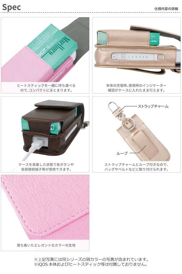 fk094igrjsエレガントで落ち着いたデザインのiQOS専用ケースです。 サイズ 約H117×W57×D53mm 個装サイズ:18×9×6cm 重量 約54g 個装重量:89g 素材・材質 外側/PUレザー 内側/ウルトラファイン・マイクロファイバー ストラップチャーム/鉄(ニッケルコーティング) 仕様 対応機種:iQOS 2.4/2.4Plus 製造国 中国 女性らしいデザインのiQOSケース エレガントで落ち着いた色の生地を使用しており、おしゃれにiQOSとヒートスティックを持ち運べる便利なケースです。 インジケーターが確認できるホールが付いているので、使用中や充電中の確認もすぐに行うことができます。 ケースを装着した状態で各ボタンや充電接続端子等が使用できます。 ストラップチャームとループ付きなので、バッグやベルトなどにつけて持ち歩けます。 エレガントで落ち着いたデザインのiQOS専用ケースです。 その他アレルギーここから保存方法と製造(販売)者情報ここから