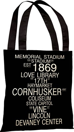 One Bella Casa Lincoln, Nebraska Landmarks Tote Bag by OBC, 18"x 18", Black/White