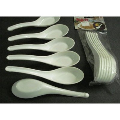 Product Description Economical package of 6 Plastic soup spoons for your Asian meal. Each spoon is approximately 6 inches long and is perfect for sipping soup or serving appetizers!