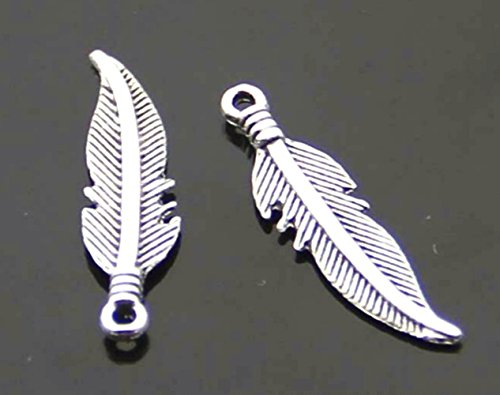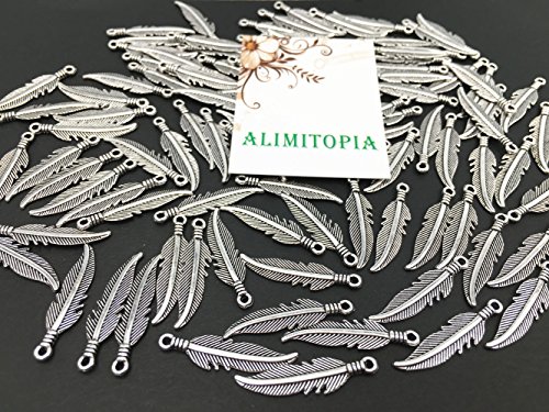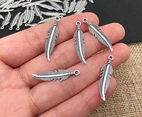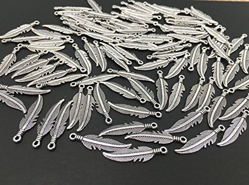 100pcs Indian Style Feather Charm Pendant for DIY Crafting Key Chain Sweater Chain Bracelet Necklace jewelry Making Findings Accessories By Alimitopia(Antique Silver)