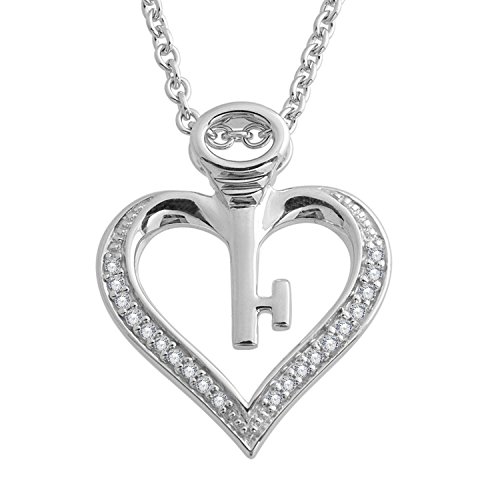 This romantic and trending Key My Heart-Shaped Diamond Pendant is gorgeously rendered in shimming Sterling Silver and studded with sparkling icy white diamonds. It dangles beautifully from a 18 inch long sterling silver cable chain. Heart is a symbol of love and joy and Key is the secret formula to open the heart. Key My Heart is the best way to show your love to your love one. Let her know you love and care. A timeless and charming Heart Diamond Pendant is the best jewelry for all occasions and outfits. Nothing can be lovely than this beautiful heart diamond pendant. Adult Signature Required upon delivery. Please arrange an eligible recipient at home to receive your order. Thank you!!!Feature