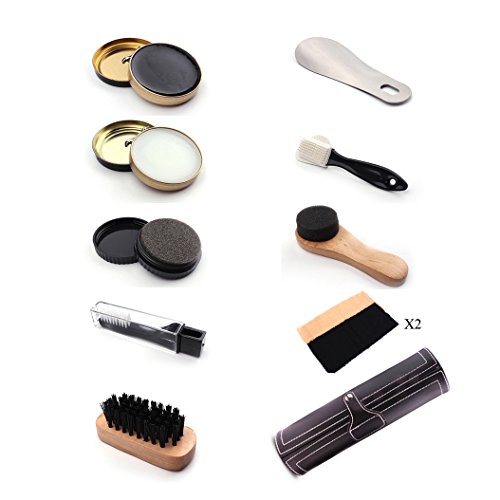 Studio : Dealhola Publisher : Dealhola Binding : Kitchen Product Description Package Includes: 1* rectangle cleaning shoe brush 9 X 3.5 X 3 cm 1* pig hair head shoe brush 13.5 X 2.5 X 2.5 cm 1* black metal tin shoe polish 16 gm 1* neutural metal tin shoe polish 16 gm 2* instant shoe shine sponge Diameter 5.5 cm 1* steel shoehorn 10.5 X 3.5 cm 1* micro fiber polish cloth 24 X 10 cm 0