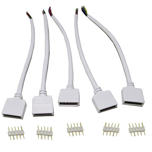 LEDENET 5pin Male Connector Wire Cable For Flexible 5050 RGBW RGBWW LED Strip Light (5-pack)