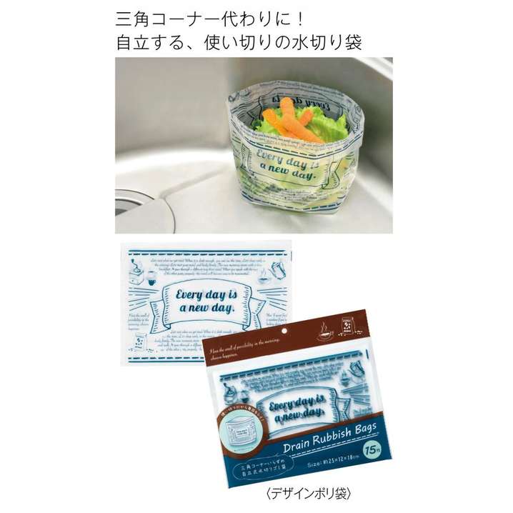 ●自立タイプの使い切り水切り袋です。おしゃれなデザインで、日常をちょっとおしゃれに。郵送案件にも対応。