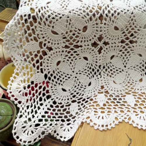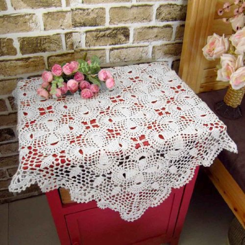 - Square shape with knitted flower design - Harmonious with dishes, tabletop items, sofa head and arm rests