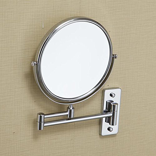 - Feature : Wall mount mirror with 10X magnification on one side, true image on the other / Swivels, tilts, and moves up or down for easy viewing / 8-inch diameter mirror / Brass frame and stainless steel construction, chrome plated / Hardware for wall mount is included