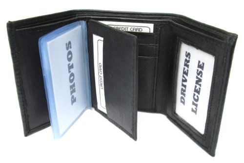 -. Title : Mens Black Leather Wallet Lamb Classic Trifold 731