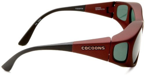 Designed to fit comfortably and securely over 99.5% of all prescription eyewear frames. Extra Large Fits over prescription frames measuring less than 5 1/2"w 2"h. Six sizes to choose from. 360° of Protection: It is important that a sunglass provides protection from all angles. Cocoons patented frame designs block damaging UV light and glare from all angles, completely isolating the eyes in a cocoon of filtered light. Each pair includes a custom designed protective neoprene case, large lens cloth and a limited lifetime frame warranty.Feature