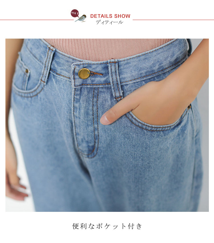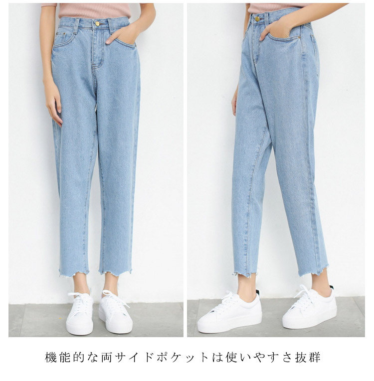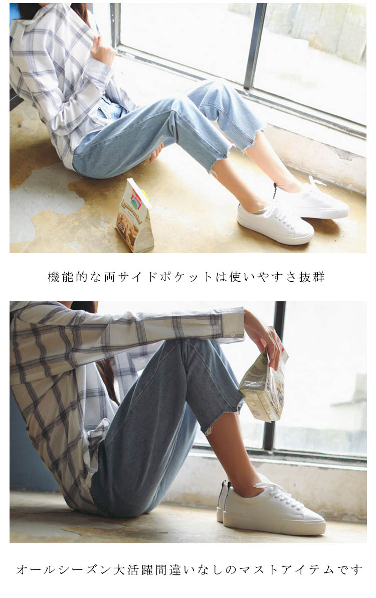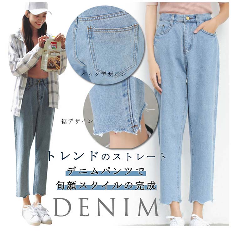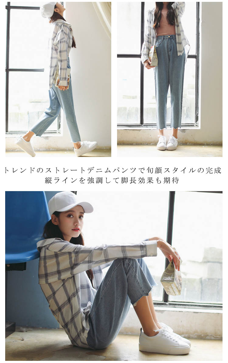 | トレンドのストレートデニムパンツで旬顔スタイルの完成縦ラインを強調して脚長効果も期待機能的な両サイドポケットは使いやすさ抜群オールシーズン大活躍間違いなしのマストアイテムです | |