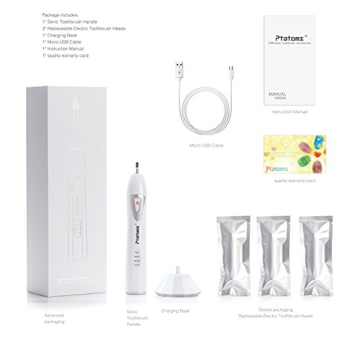 Sonic Electric Toothbrush , Ptatoms waterproof Rechargeable Toothbrush rated IPX7 For Superior Dental Hygiene (gray)