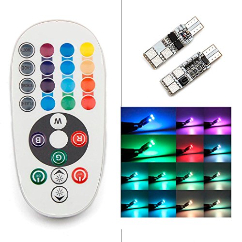 -. Feature : LED car interior car light, multi color and flash modes controlled by remote control, easy to use. / control mode: 16 static colors, brightness control, on / off, flash, fade, strobe. / come with 3 plugs: T10 light adapter, adapter festoon Light BA9S adapter. These bulbs can be used in many lighting / color: 16 colors.Package Content: 2 x T10 LED light , 1 x Remote Control / it is easily installed in minutes-without tools.