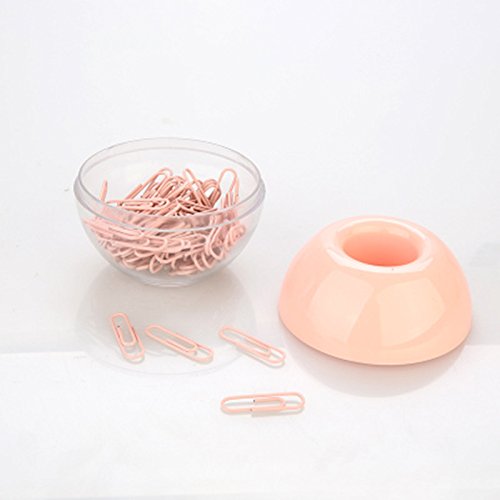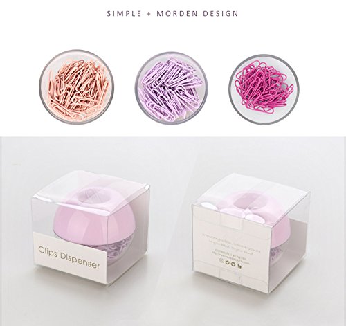 MultiBey Pastel Paper Clips with Round Magnetic Box, Non-skid Smooth Finish Plastic Coated Steel Wire U Pin Memo Bookmark Clip Dispensers, Purple/ Pink/ Modena, 28mm/ 1.1", Pack of 100 Clips (Pink)