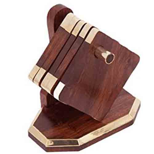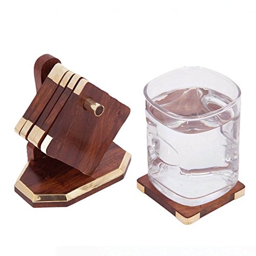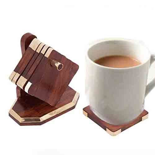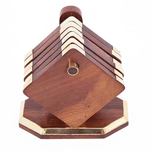 - Wooden & Brass Designer Sheesham Wood Coaster Set Office & Home Decor Gift Item