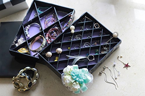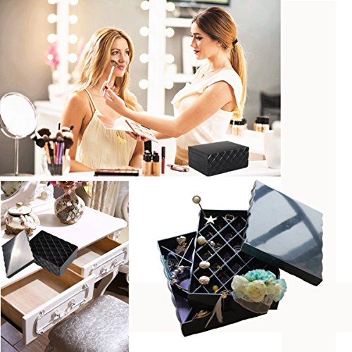 CECIINION Two-layer Jewelry Box Organizer Display Storage Case, Jewelry Treasure Box (Black)