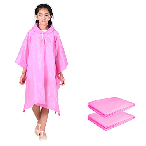 Rain Poncho 2 Packs for kids with Drawstring Hood - for Hiking, Backpacking, Camping or Traveling