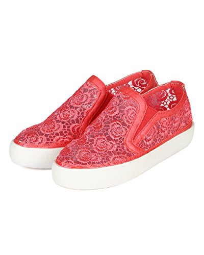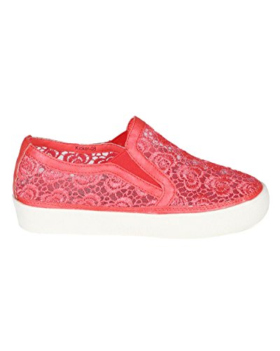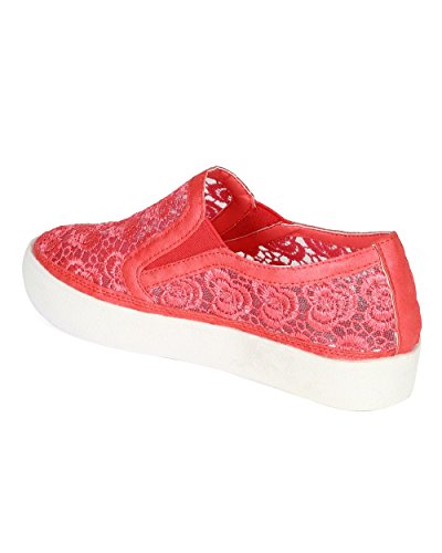 Nature Breeze CC63 Women Leatherette Lace Mesh Flat Sneaker - Coral