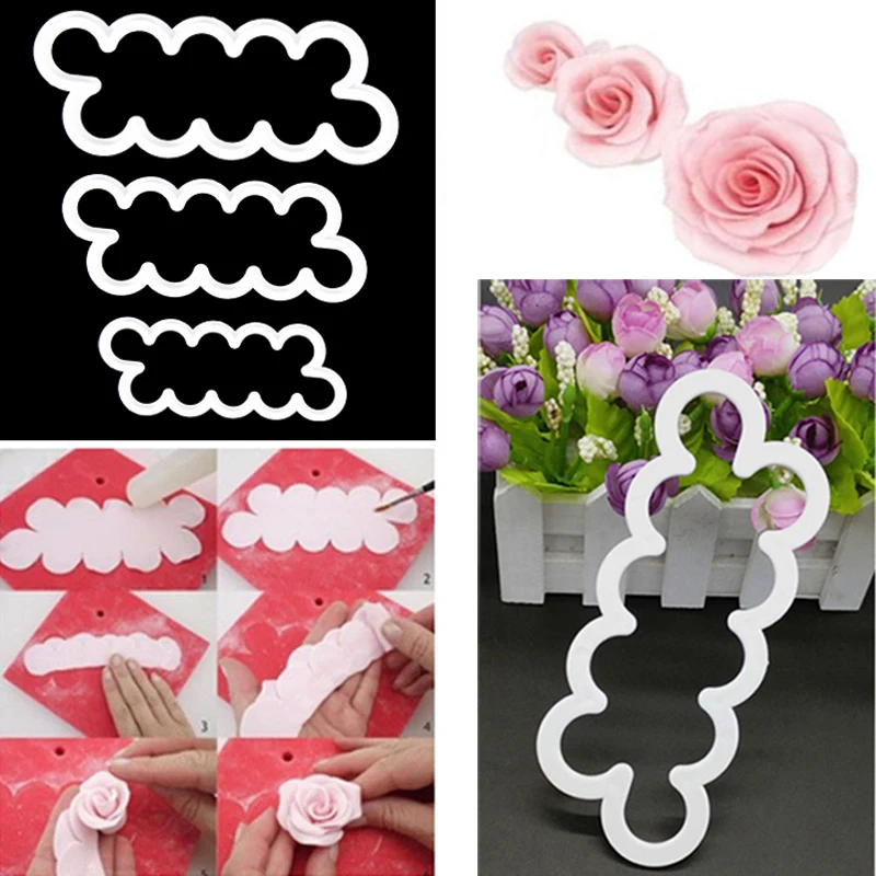 three sets of one-piece plastic mold fondant cake Rose modeling tool