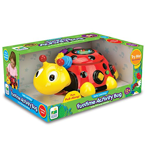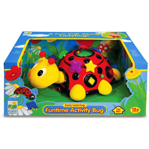 Funtime Activity Bug is lots of fun for early learners! This interactive ladybug stimulates youngsters' tactile and motor skills. Features include large buttons, fun sound effects, flashing lights and rotating shapes. Toddlers can pull Funtime Activity Bug along with them for hours of mobile entertainment. Requires two AA batteries (included). Ages 12+ months.