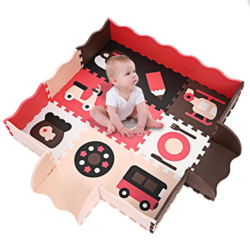 GREAT JOYS ON PUZZLE PLAY MAT: The foam mat's tiles all feature shapes and bright primary color puzzle pieces that grab kids' attention and spark their interest. It could help with the development of Kids' Imagination and hand-eye coordination.