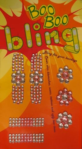 -. Binding : Health and Beauty -. Brand : Boo Boo Bling -. Feature : Get your glam on even when you have an ouchy. / These stylin' band aids will show off your sassy side. / You're never too old to wear a fun band aid on your boo boo. / Bling your bandage. / Package includes 7 Boo-Boo-Blings in three sizes. Two regular, three round and 2 large. -. Label : Boo Boo Bling -. Manufacturer : Boo Boo Bling -. ProductGroup : Health and Beauty -. ProductTypeName : HEALTH_PERSONAL_CARE -. Publisher : Boo Boo Bling -. Studio : Boo Boo Bling -. Title : Boo Boo Bling Crystal Bandages