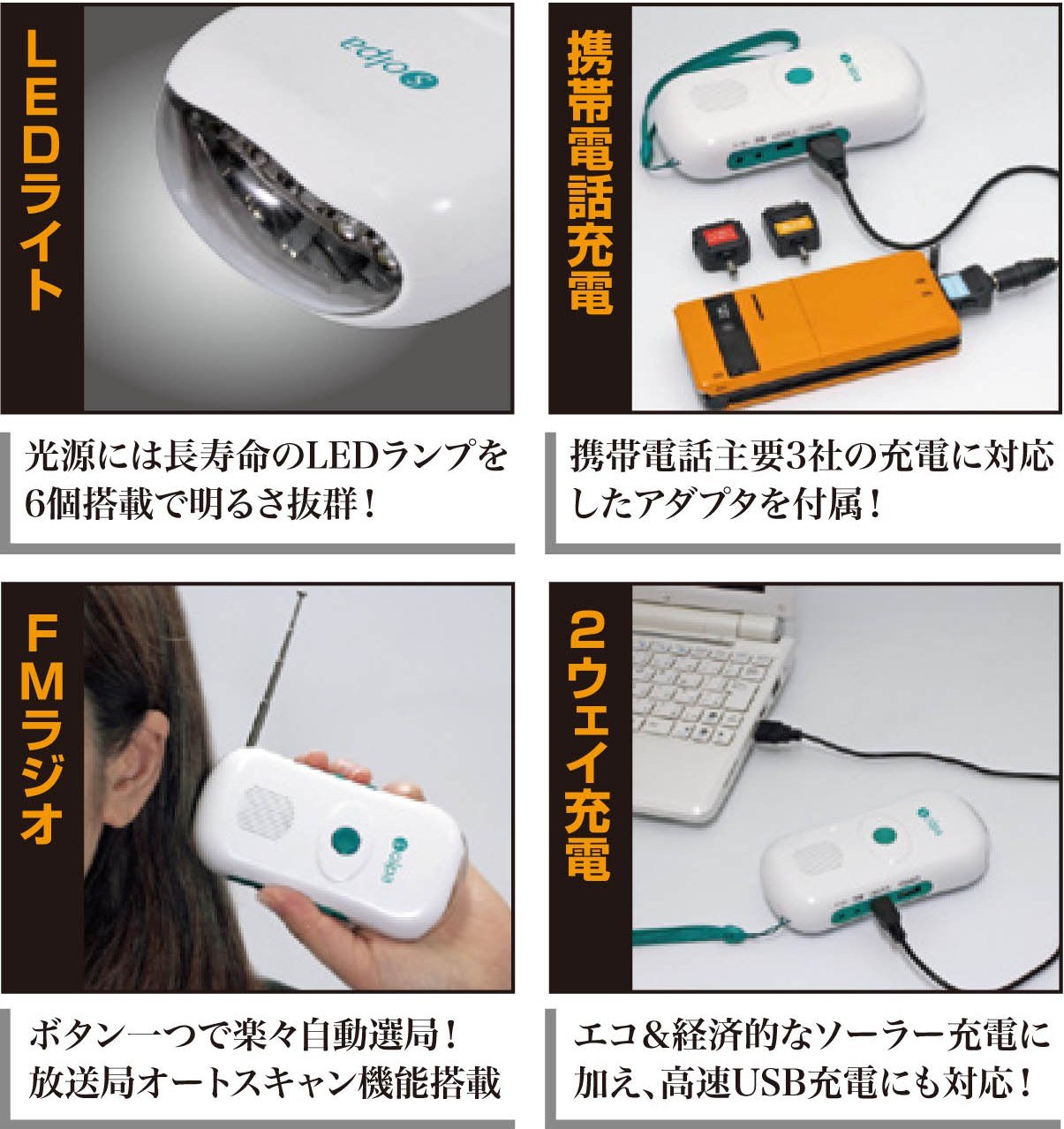 ● I am happy to live, earth-friendly "FM radio" "charger" "flashlight" is one of three roles.