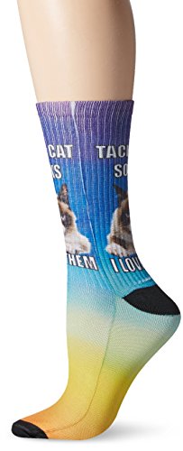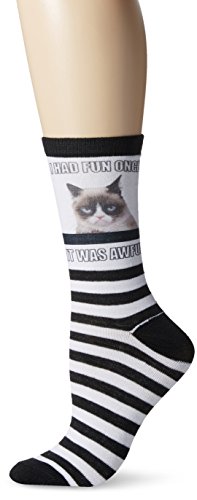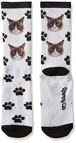 -. Binding : Apparel -. Brand : Grumpy Cat -. Department : womens -. Feature : This pair of flat knit white socks for women are made of a cozy cotton blend featuring a white graphic against a black background, plus "Go Away" and "Grumpy Cat" text on the leg and foot of the sock. / One pair per pack. -. Label : K. Bell Women's Socks and Hoisery -. Manufacturer : K. Bell Women's Socks and Hoisery -. ProductGroup : Apparel -. ProductTypeName : SOCKSHOSIERY -. Publisher : K. Bell Women's Socks and Hoisery -. Studio : K. Bell Women's Socks and Hoisery -. Title : Grumpy Cat Women's Single Pack Stay Grumpy Crew Socks