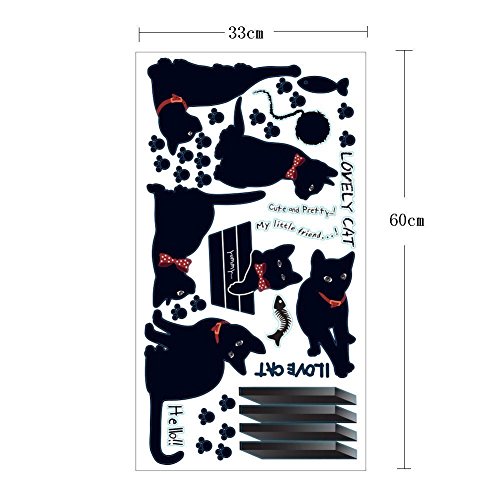 ufengke Simple Stylish Various Postures of Black Cat Paw Prints Wall Decals, Living Room Bedroom Removable Wall Stickers Murals