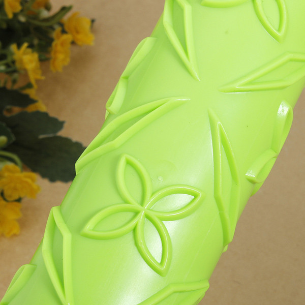 Roll out fondant with a smooth rolling pin and once rolled out the pattern imprint design