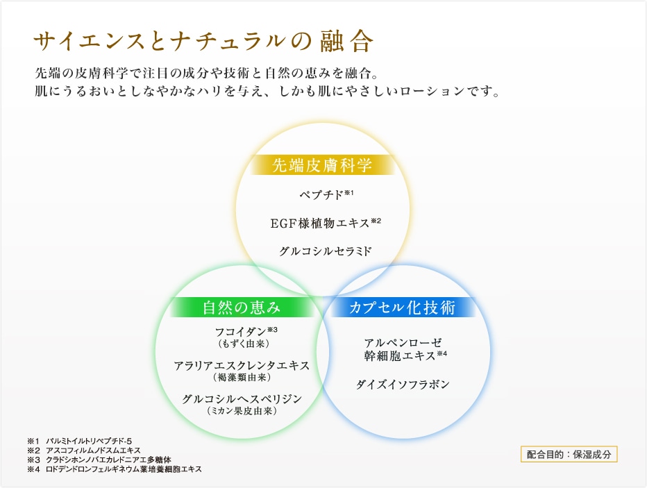 肌にうるおいとしなやかなハリを与え、しかも肌にやさしいローションです。