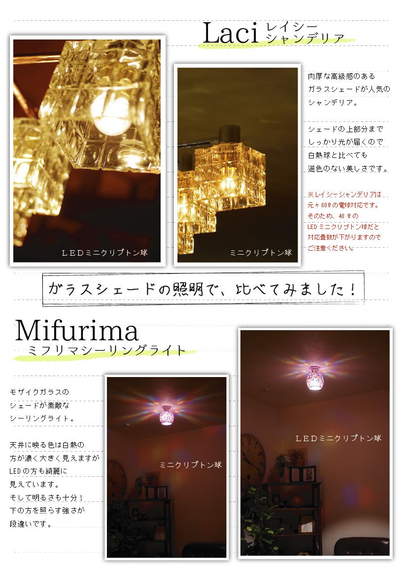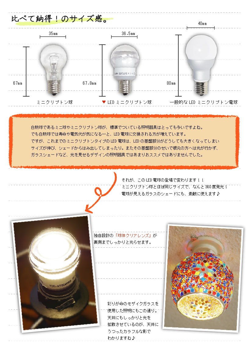 The mini krypton type LED light bulb that has been out so far is large in size from the shade