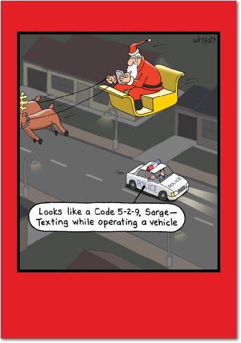 B1676 Box Set of 12 Texting While Sleighing Unique Inappropriate Christmas Paper Cards with Envelopes