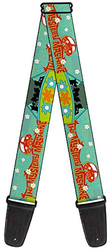 -. Title : Scooby Doo Theme Nylon Guitar Strap - "The Mystery Machine" Van Driving Silhouettes w/ Hippie Flowers