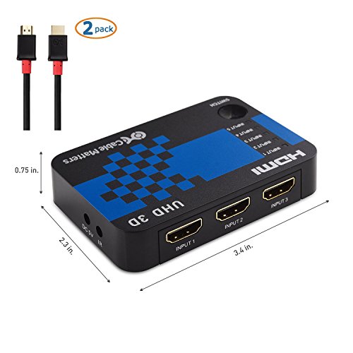 BONUS 2-PACK of 4K rated HDMI cables are included; Optional 2.5 foot DC to USB power cable is included with the 5 input / 1 output HDMI switch to boost the signal from low power HDMI sources