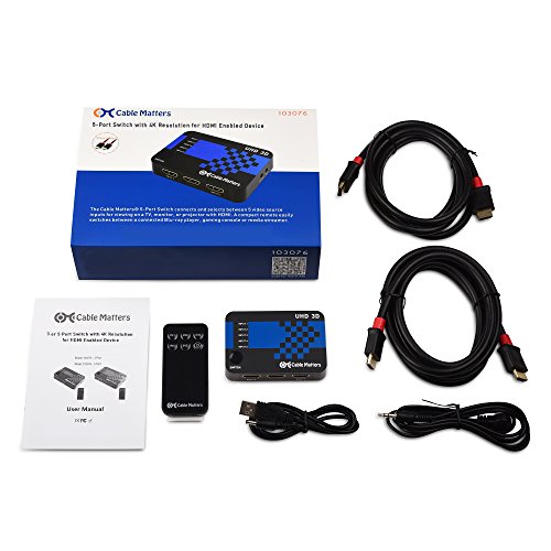 REMOTE SWITCHING between 5 HDMI sources such as a Blu-ray player, gaming console, or media streamer with an included lightweight handheld IR remote control