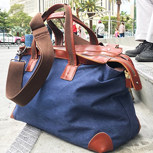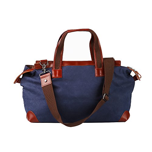 -. Title : Travables Weekender Bag, Large Overnight Canvas Leather Lage Duffel Travel Tote Carry on Holdall for Gym Sports Trips