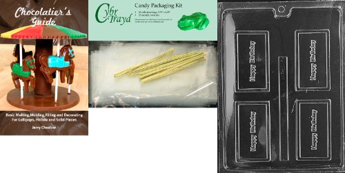 Cybrtrayd Happy Birthday Business Card Chocolate Candy Mold with Chocolatier's Bundle, Includes 25 Cello Bags and 25 Gold Twist Ties