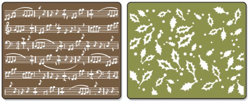 Sizzix Textured Impressions Embossing Folders 2/PK - Holly Swirls & Sheet Music Set by Rachael Bright