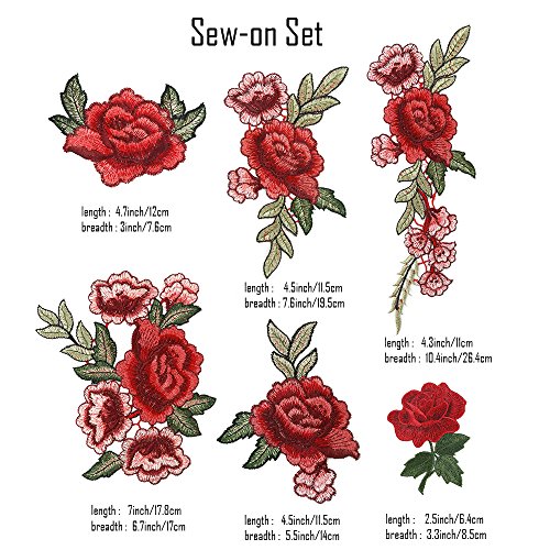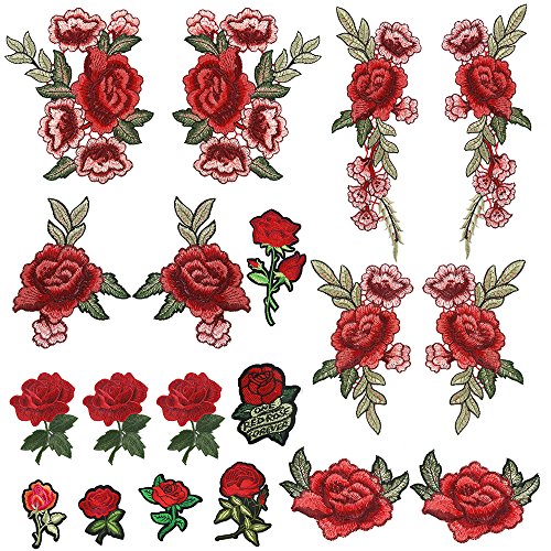 - 19 Pieces embroidery combinations contains sew on patch applique and iron on rose patch embroidered, can match with items of different styles and shapes