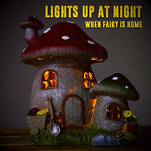 Fairy Garden House: Solar Power Mushroom Light Creates an Enchanting Glow at Night | Makes Any Outdoor Garden Magical | Lights Up Automatically From Dusk to Dawn | The Best Gift For All Fairy Lovers