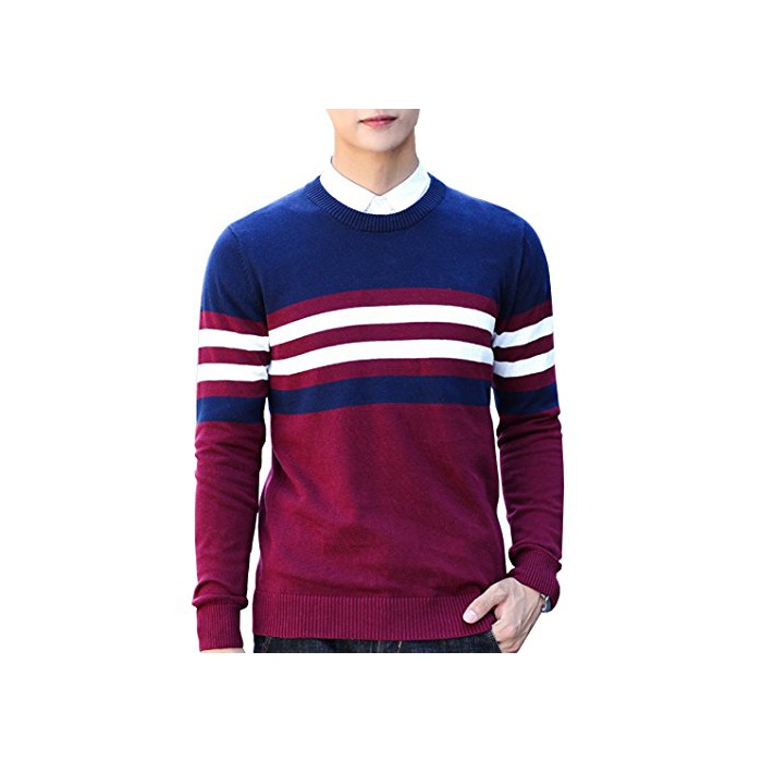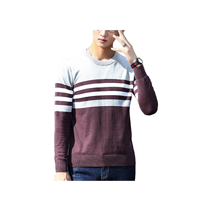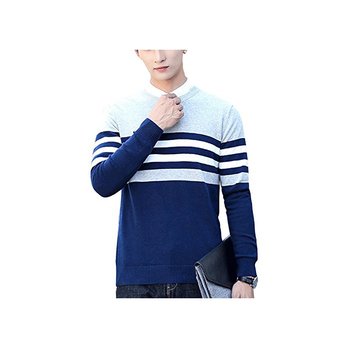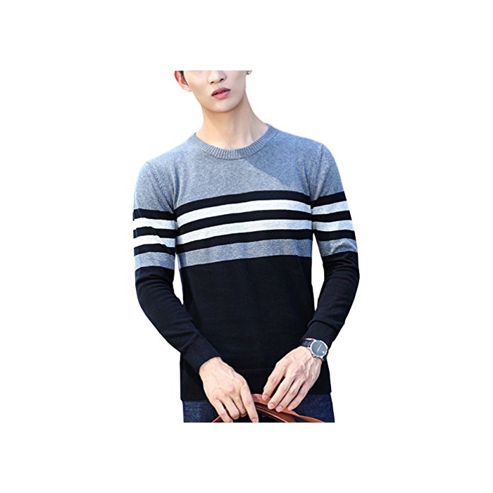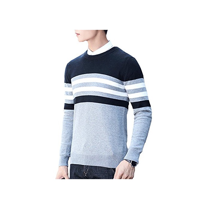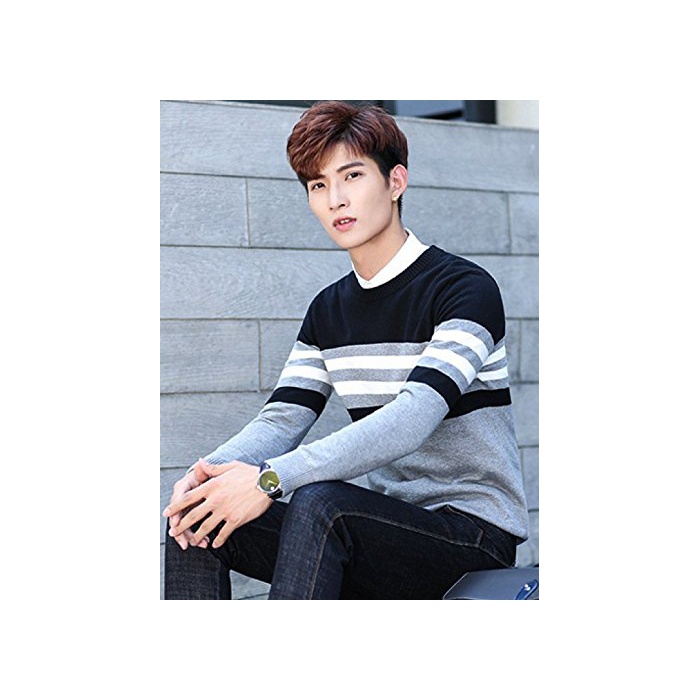 D-ZHEN 스웨터 맨즈 니트 보더 캐주얼 스웨터 긴 소매 둥근 목 모양 춘추 …
