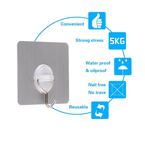 【WIDE APPLICATION】The sticky wall hooks can work on most flat and stable surface, especially great for hanging shower or bath accessories in a bathroom or kitchen utensils and tools on a tile backsplash.