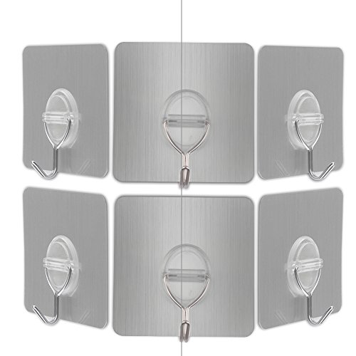 Reusable Adhesive Hooks,Brushed Silver High Bearing Capacity Non-trace Hook for Kitchen Bathroom Storage Room Tile Wall Heavy DutyTowel Hooks Waterproof and Oilproof (Upgrade 6PCS)