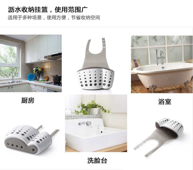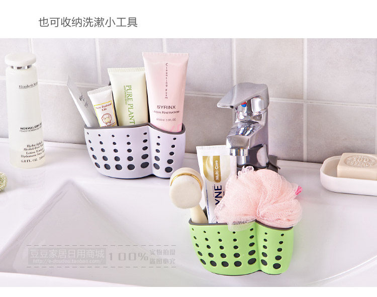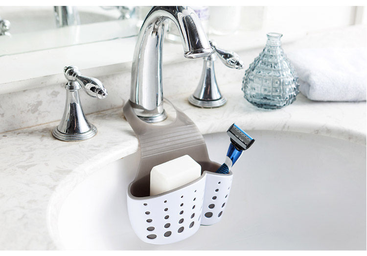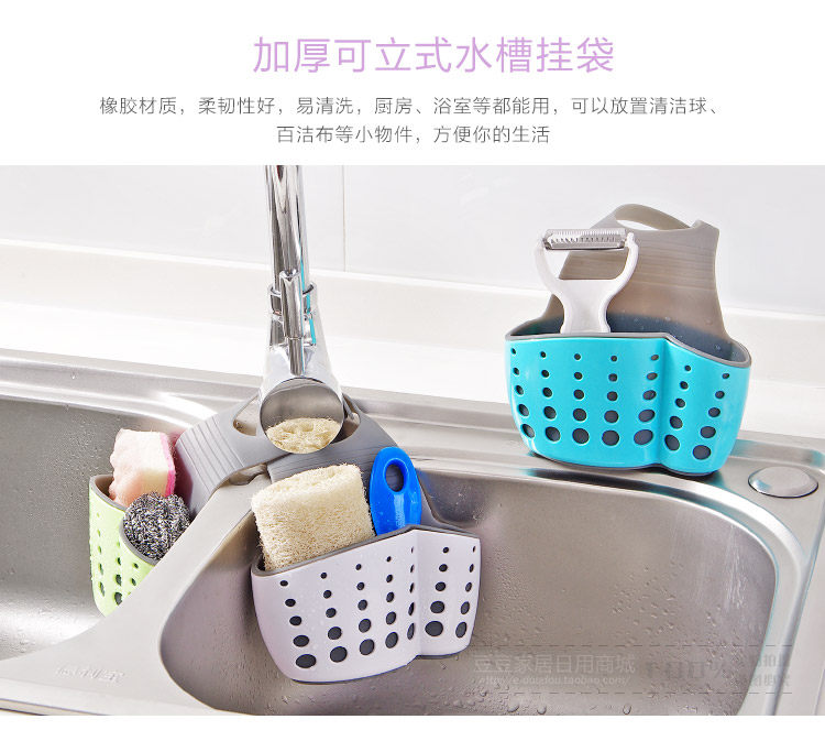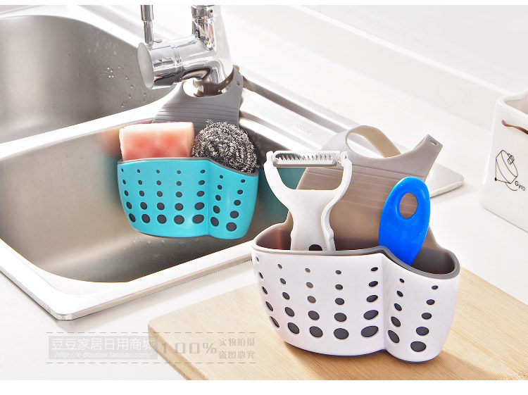 High-quality PVC material, high temperature, flexible and durable, according to buckle design, adjustable size, hollow drainage, ventilation, can be hung on the faucet storage sponge, cleaning balls, soap, etc., to facilitate your life